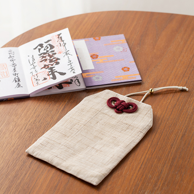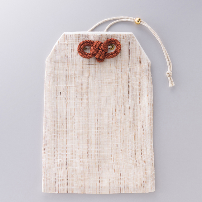 手績み、手織りの昔ながらの麻を使用した、御朱印帳を入れるお守り型の御朱印帳ポーチです。