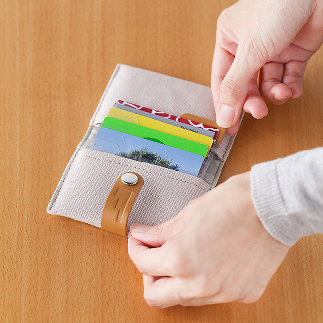 スライド機能が付いたこのケースなら、かさばるカードを整理して収納できます。