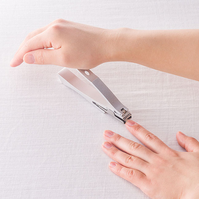ここに人差し指の腹をのせ、自分に向けて爪切りを持つと、しっかり安定したポジショニングに!