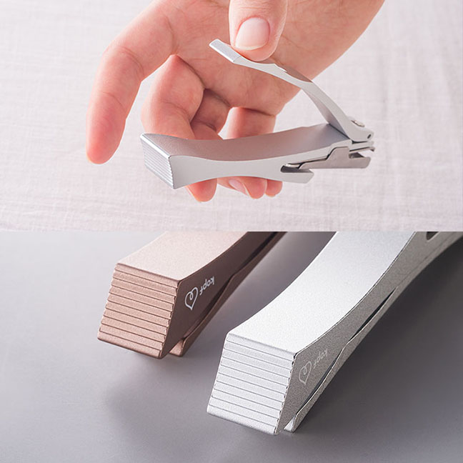 「ヨシタ手工業デザイン室」×「小坂刃物制作所」のコラボで誕生した爪切りは、ユニバーサルなデザインで、握力が弱い方や手がうまく動かない方にも使いやすいように細部まで工夫されています。