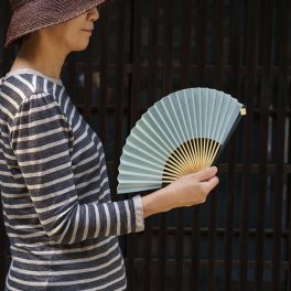 涼し気でシャリ感のある近江ちぢみを使った和モダンな扇子。